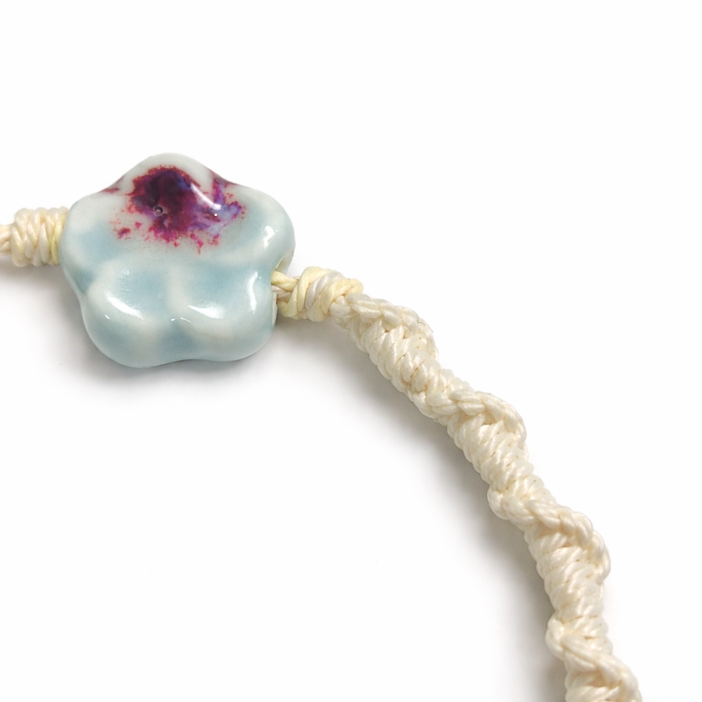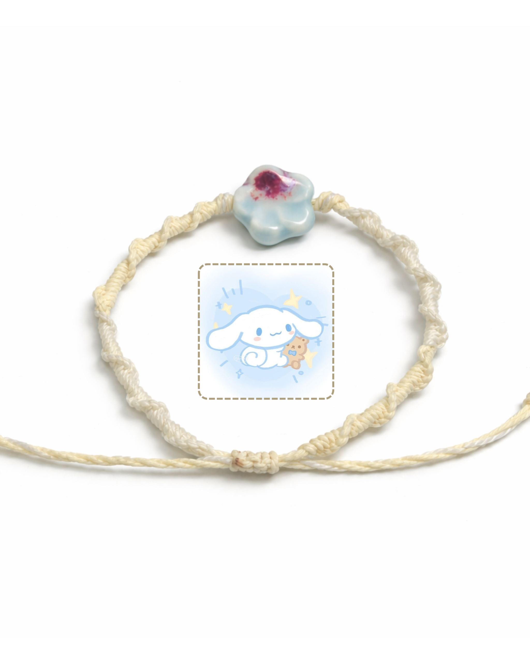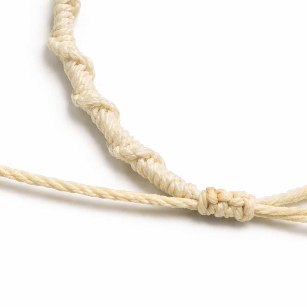 The off-white braided thread enhances its clean and cozy aesthetic, making it perfect for everyday wear or as a thoughtful gift. Lightweight and comfortable, it features an adjustable sliding knot for a secure and flexible fit. Each bracelet is handmade, giving every piece its own unique charm.